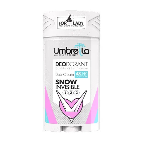 استیک ضد تعریق زنانه آمبرلا مدل اسنو مناسب برای انواع پوست. این محصول با رایحه عالی خود احساس خوبی را به شما منتقل میکند.اگر چه انتخاب رایحه بسیار سلیقه ای است. ماندگاری و جذب بالای این محصول نظر بسیاری از کاربران را به خود جلب کرده. این محصول فاقد الکل ، پارابن و آلومینیوم است که برای پوست ضرر دارد.صد حساسیت بودن این استیک نیز قابل توجه است.
