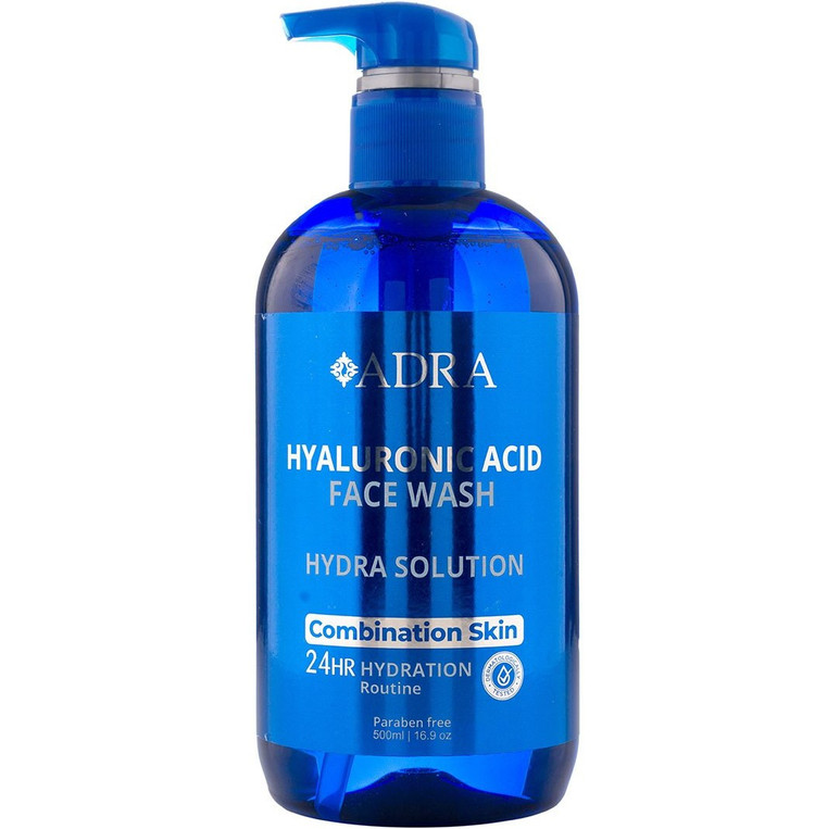 ژل شستشوی صورت آدرا هیالورونیک اسید شوینده موثر و آبرسانی کننده ای است که در حجم 500 میلی لیتر و در بسته بندی پمپی به فروش می رسد. ژل شستشوی صورت حاوی هیالورونیک اسید آدرا به دلیل وجود بتا هیدروکسی اسید سالیسیلیک اسید، خاصیت کراتولیتیک داشته و سلول های مرده سطح پوست را از بین می برد.